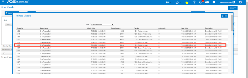 Confirm Paid Checks in Accolent ERP