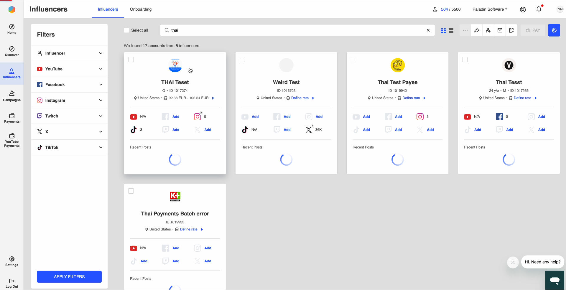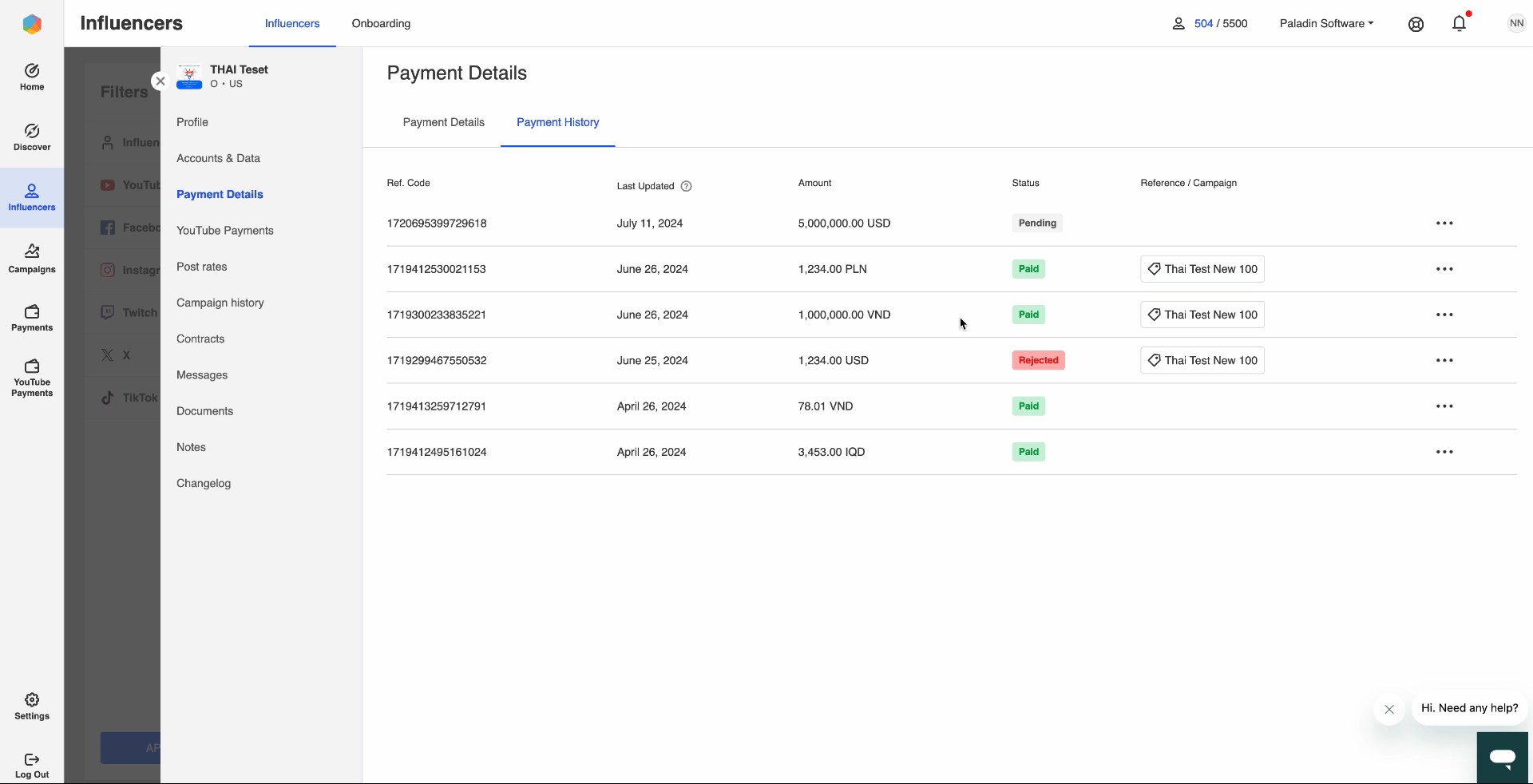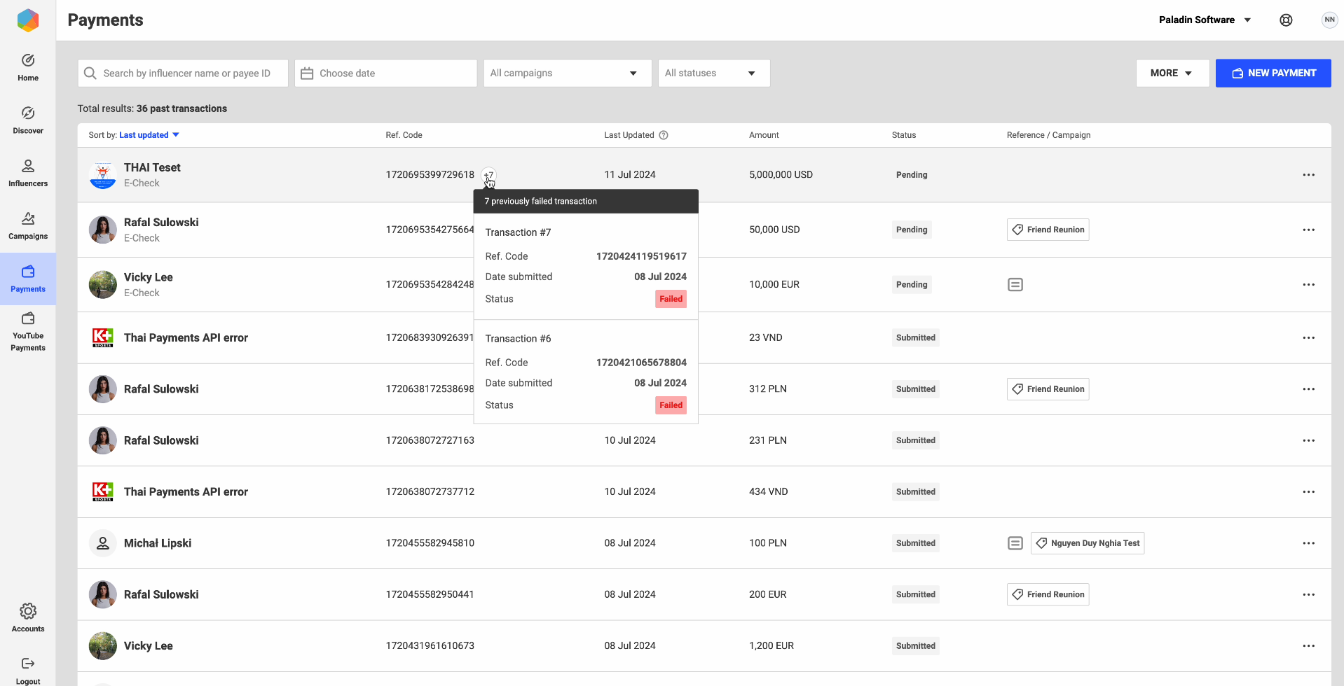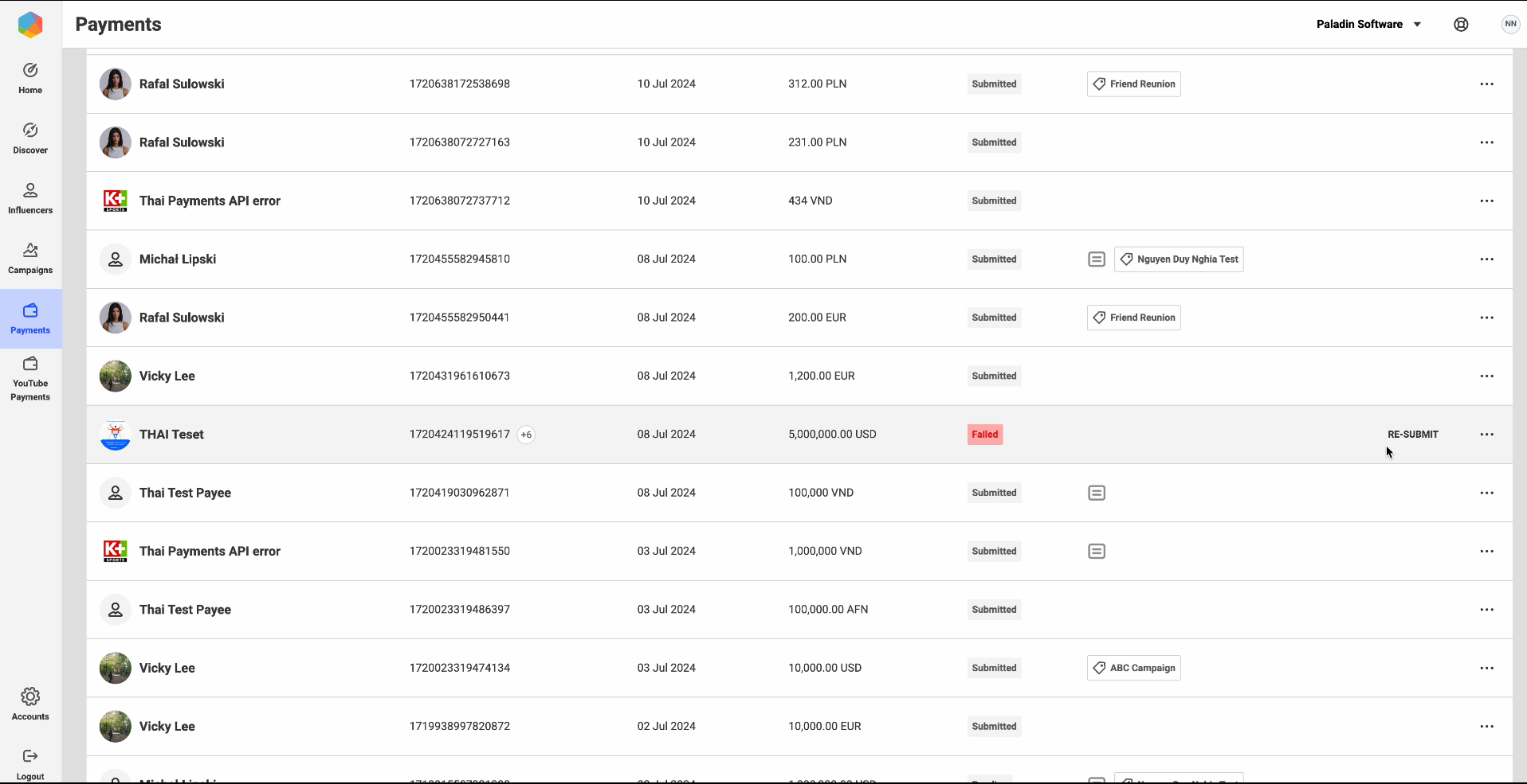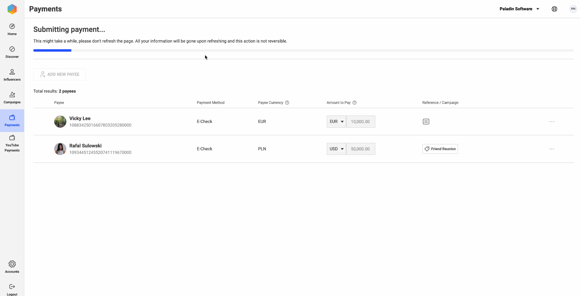 View influencers payments