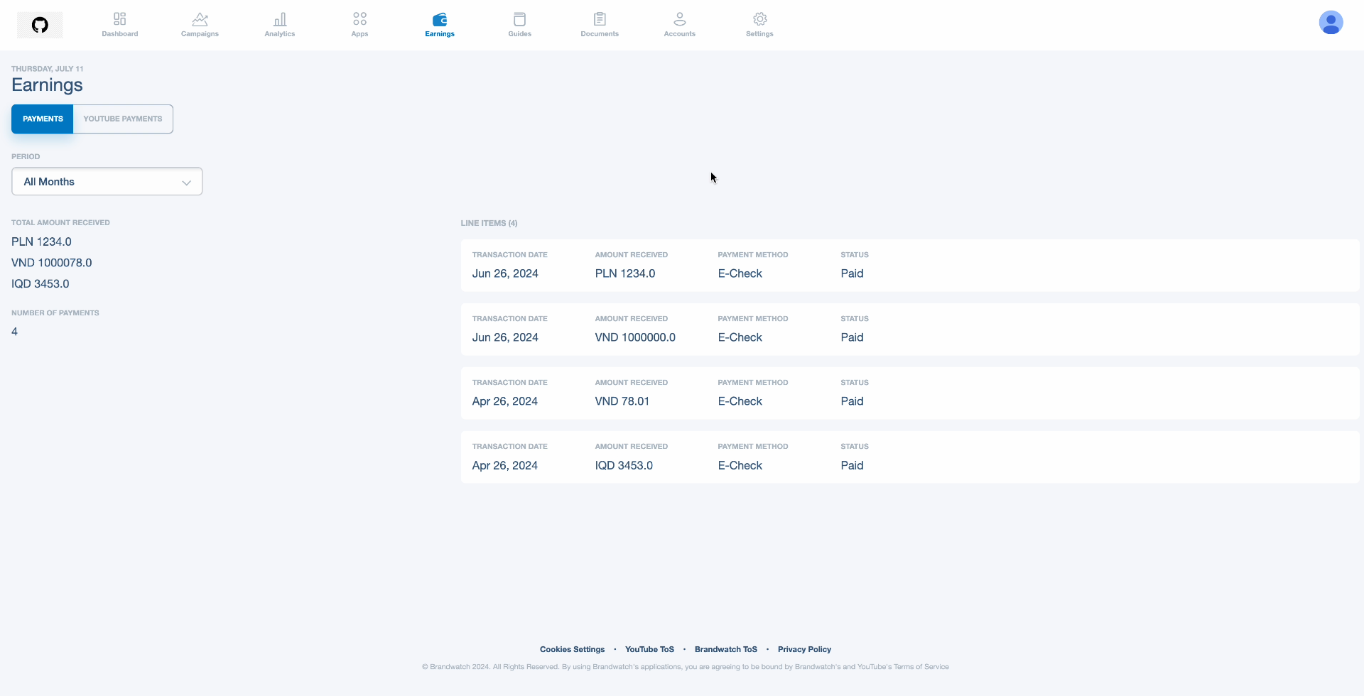 Follow these steps to make payments to Brandwatch affiliates through Tipalti.