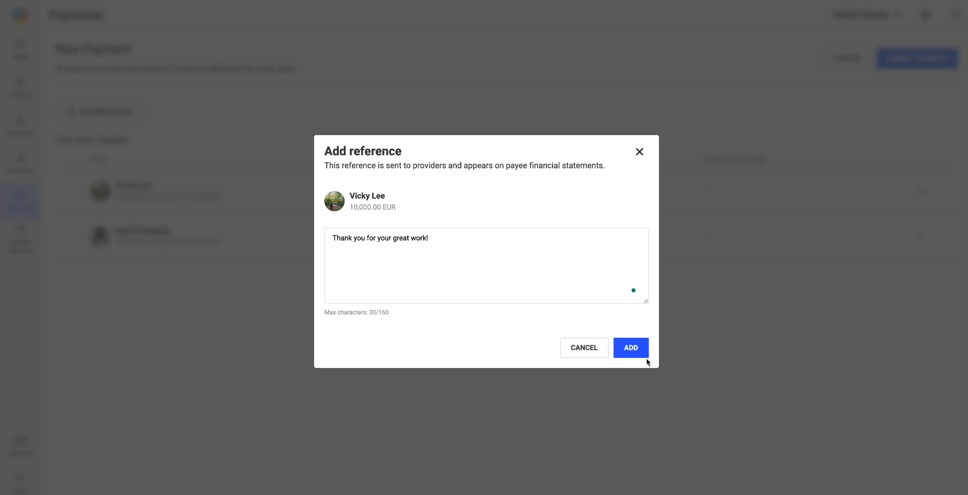 - If you select "Add reference", you can add a note that would be sent to the providers and add to the financial statement.