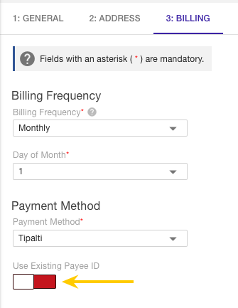 - Since the payee does not have an existing Tipalti account, toggle off "Use Existing Payee ID" as shown below.