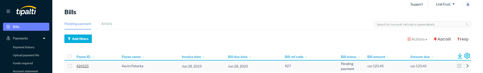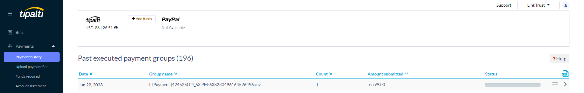 Tipalti team enables Tipalti in the backend of LinkTrust. After Tipalti has been enabled in the backend the user can finish the setup process.