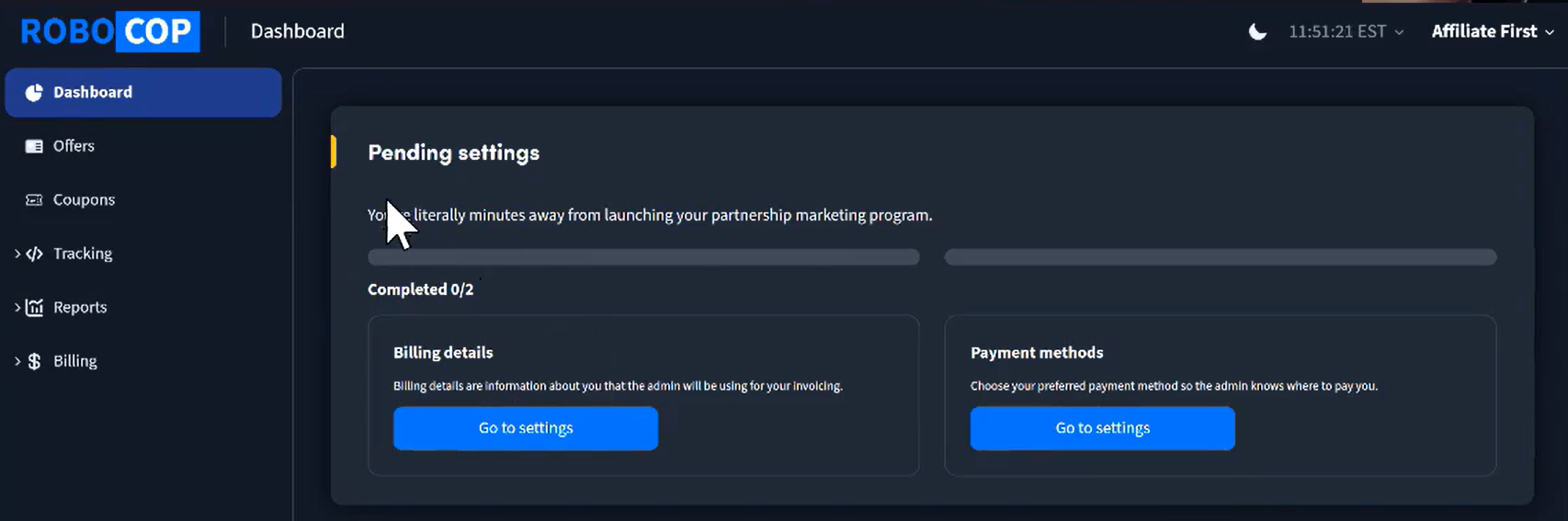 In the Trackdesk Affiliate dashboard, Go to Billing > Payment methods.