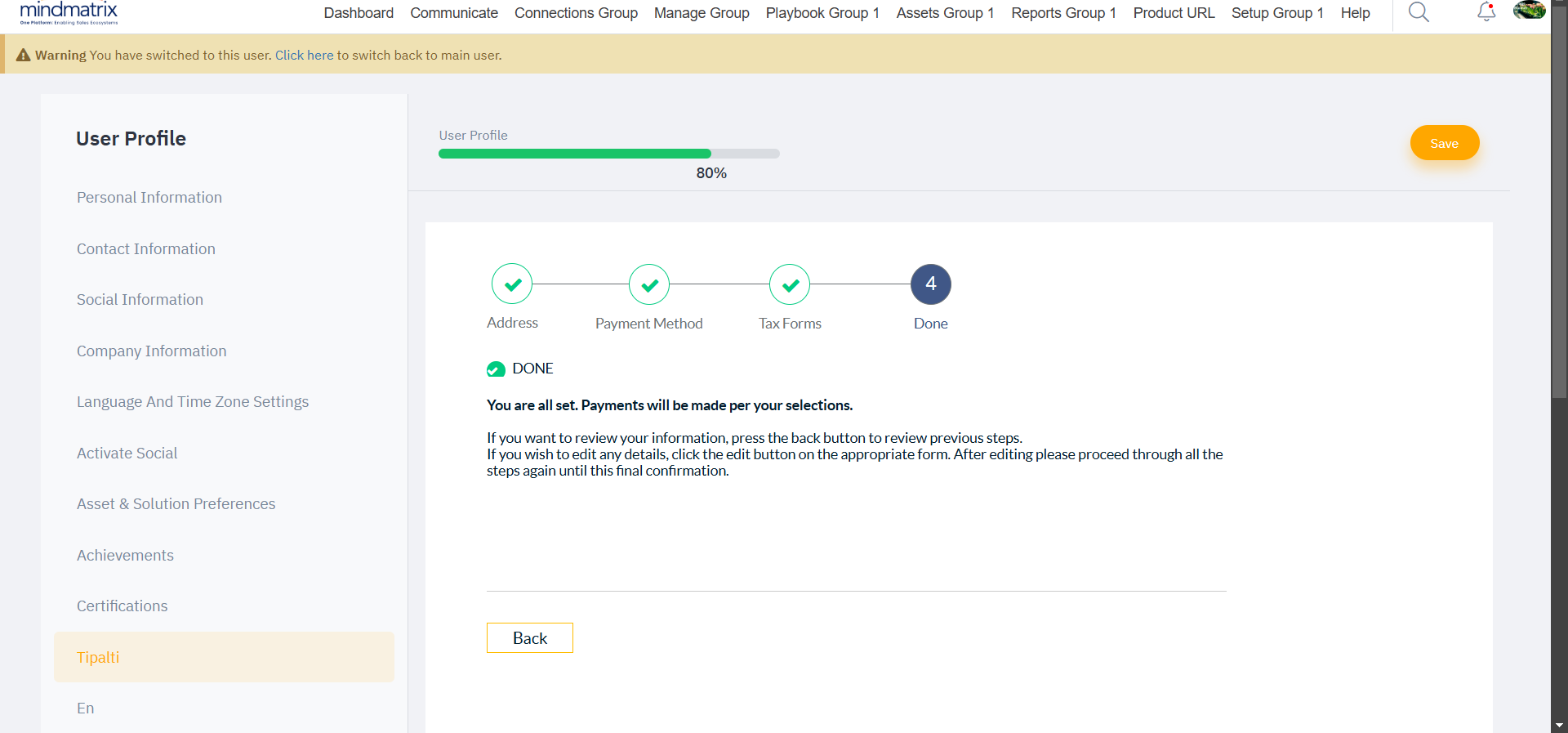 Inform your affiliates to do the following to complete their Tipalti account setup through their Mindmatrix Affiliate Portal.