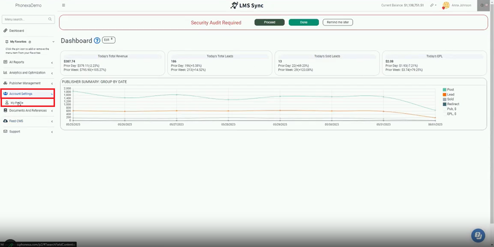 From the publisher's view, to to Account Settings > My Profile.
