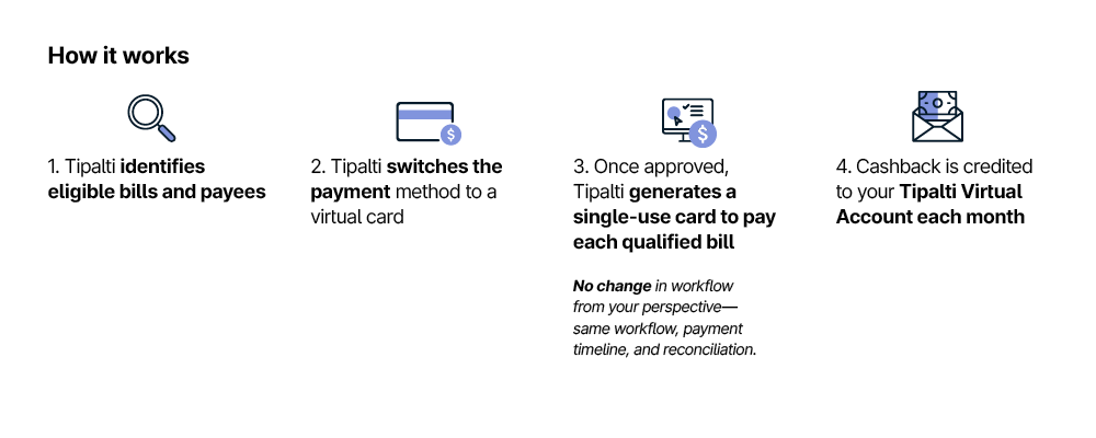 Once we pre-qualify eligible payees or bills, Tipalti converts the payee payment method to ‘Tipalti Card’. This has many benefits for both the payer and payee, including: